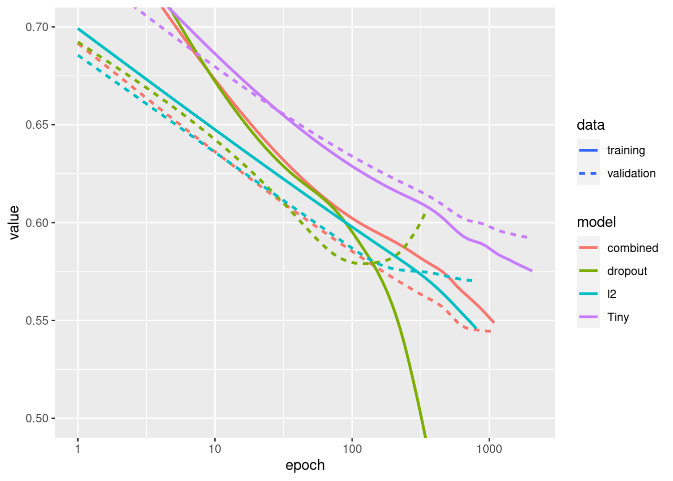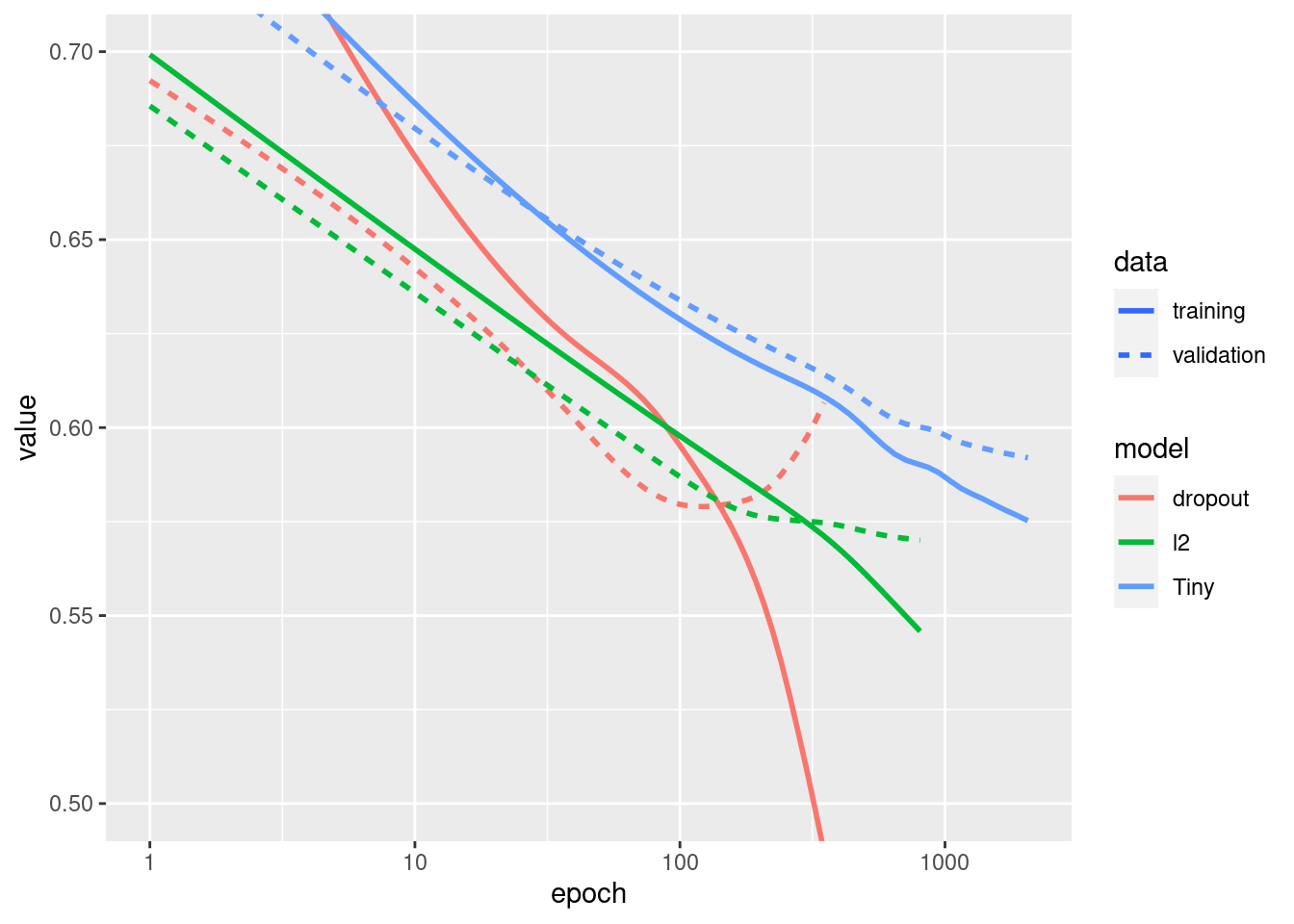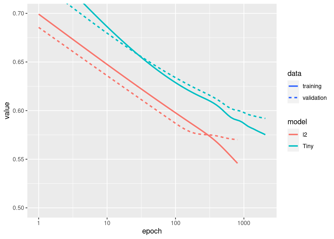 regularizer_histories[['Tiny']] <- size_histories[['Tiny']]